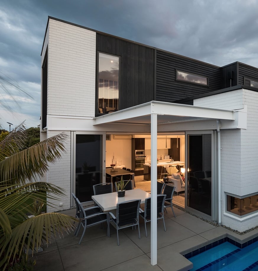 Every day we enjoy the interesting angles of our stunning new home, its practical layout and welcoming facade. From the outset Mark was a great listener, eager to accommodate our living style, while at the same time injecting a real flair into the design. He took on board our initial concerns about building a modern home in a very established area, and went to great lengths to make the best use of our very large section, without “saturating” the entire property with house!