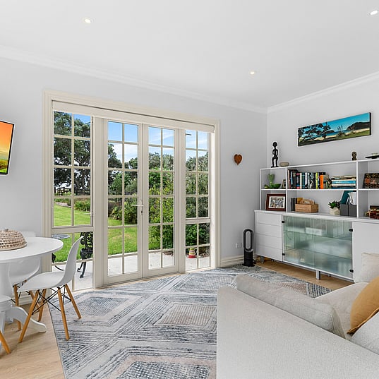 Two existing one-bedroom cottages and sleep-out and new triple garage.